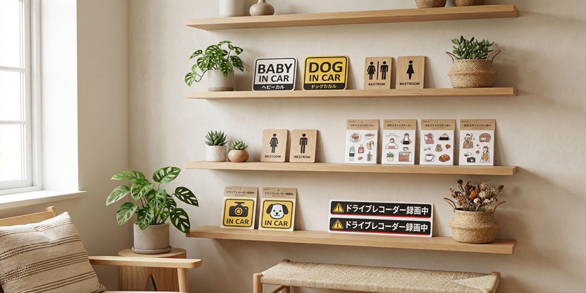 雑貨屋Cheerfulは、日常と空間にわかりやすさとやさしさを届けるサイン専門店です。Dog in Carステッカー、店舗・施設向けピクトサイン(案内・注意表示)、インテリアに馴染む木製プレートなど、実用的でやさしいデザインの商品を2万点以上取り揃えています。