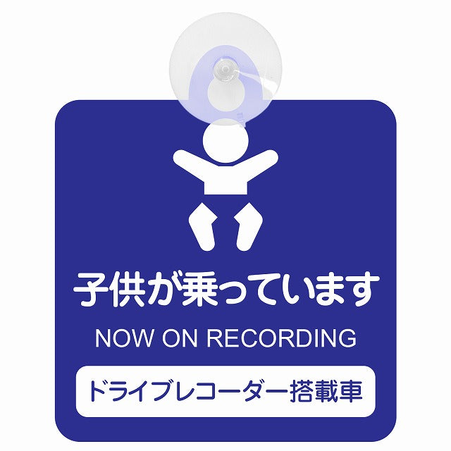 ドライブレコーダー 子供が乗っています ブルータイプ 車用吸盤付サイン 12.4x14.6cm