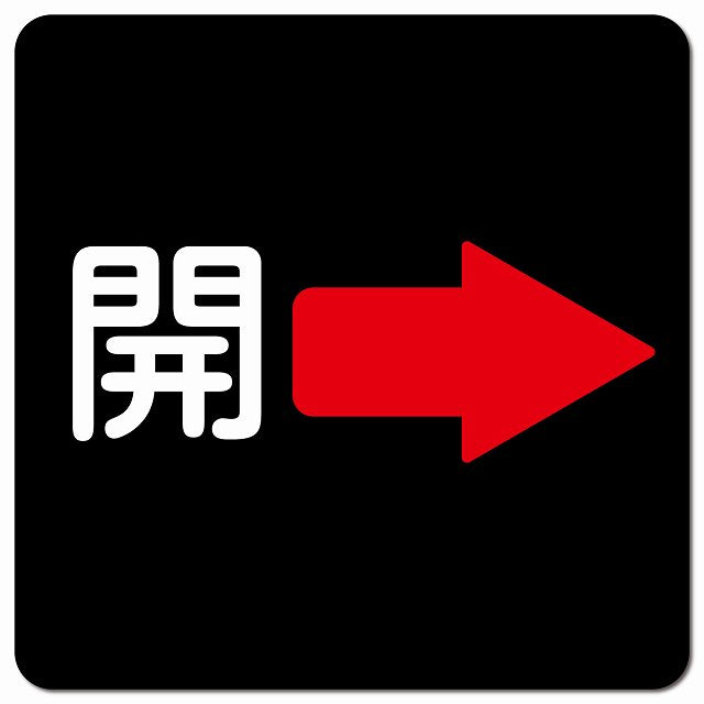開 右 矢印 ブラック ピクトサイン マグネット 正方形 13x13cm