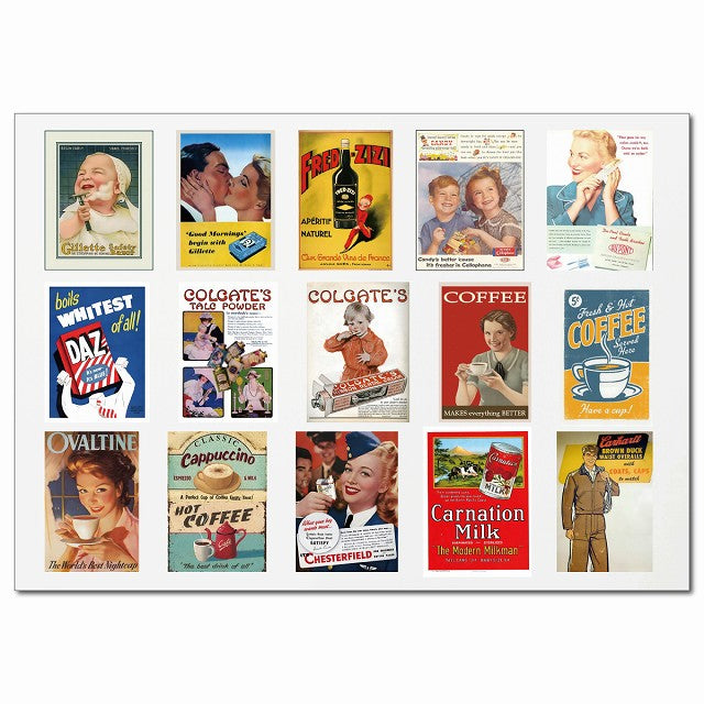 ミッドセンチュリー広告アート・Aグループ 15柄 A4サイズ まとめて 詰め合わせ