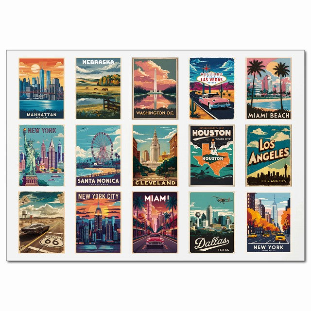 ヴィンテージ・トラベルポスター ニューヨーク ラスベガス アメリカン 15柄 A4サイズ まとめて 詰め合わせ