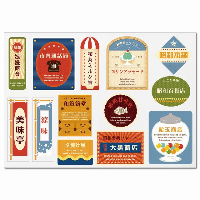 - A4サイズ詰め合わせ:昭和レトロ、海外ビンテージ、アウトドア、トラベルテイストのステッカーをA4サイズ1枚にまとめたセットです