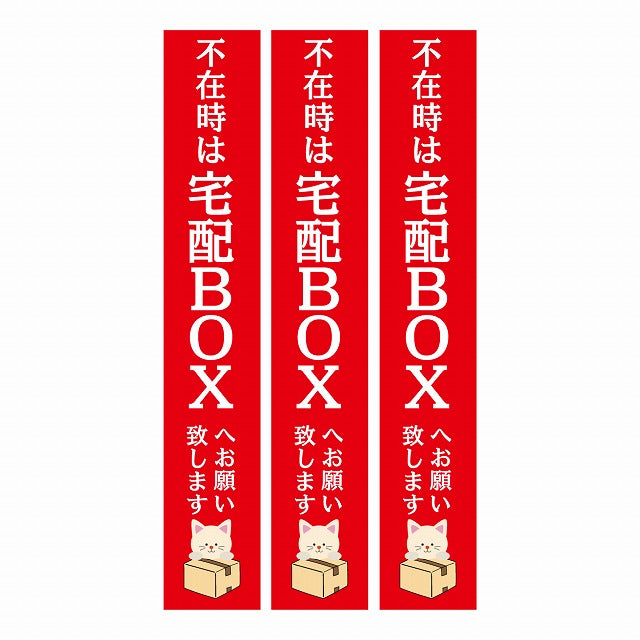 不在時 宅配BOX 指定 インターホン対応 ねこ レッド 3枚セット ステッカー 長方形 縦タイプ 17x100mm