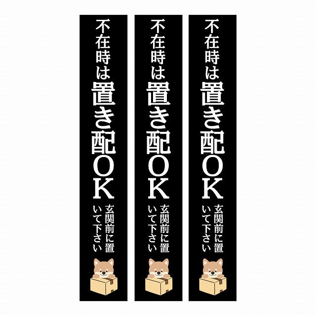 不在時 置き配 OK インターホン対応 いぬ ブラック 3枚セット ステッカー 長方形 縦タイプ 17x100mm