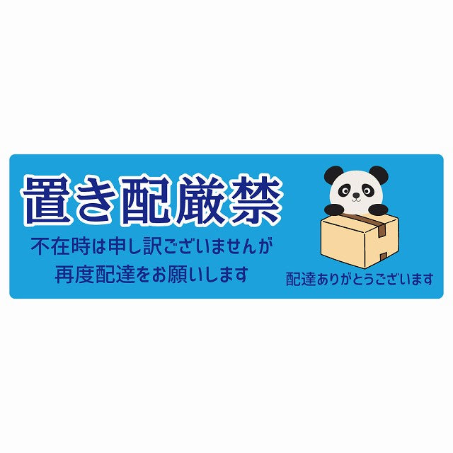 ぱんだ パンダ ライトブルー 宅配 置き配厳禁 指定 ステッカー 長方形 14x5cm