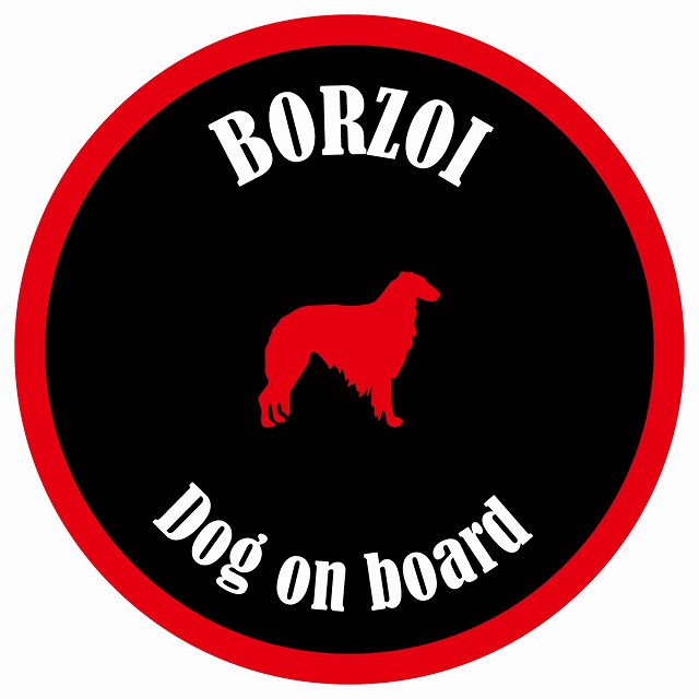 カラフル Dog on board 丸型 ボルゾイ ブラック&レッド 直径13cm
