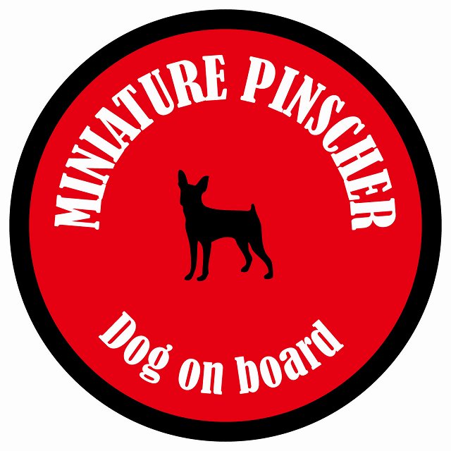 カラフル Dog on board 丸型 ミニチュアピンシャー レッド&ブラック 直径13cm