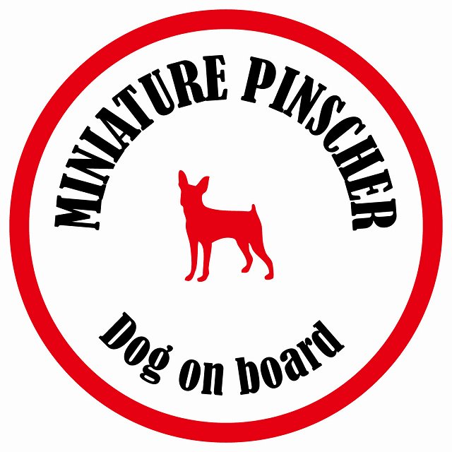 カラフル Dog on board 丸型 ミニチュアピンシャー ホワイト&レッド 直径13cm