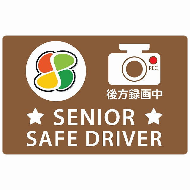 高齢者マーク シルバー SENIOR SAFE DRIVER 後方録画中 ブラウン ステッカー 14x9cm 長方形