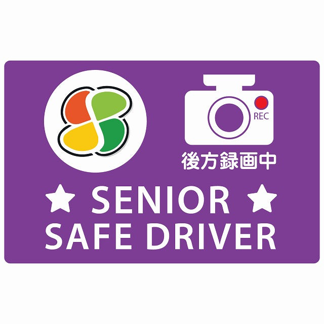 高齢者マーク シルバー SENIOR SAFE DRIVER 後方録画中 パープル ステッカー 14x9cm 長方形