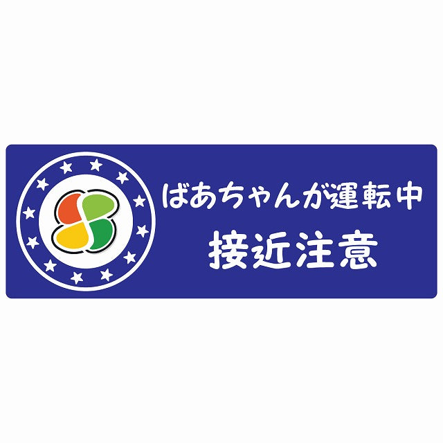 高齢者マーク ばあちゃんが運転中 接近注意 シルバーマーク ブルー ステッカー 14x5cm 長方形