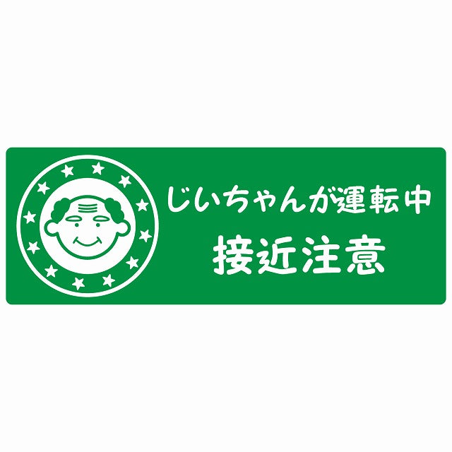 高齢者 シルバー じいちゃんが運転中 接近注意 顔マーク グリーン ステッカー 14x5cm 長方形