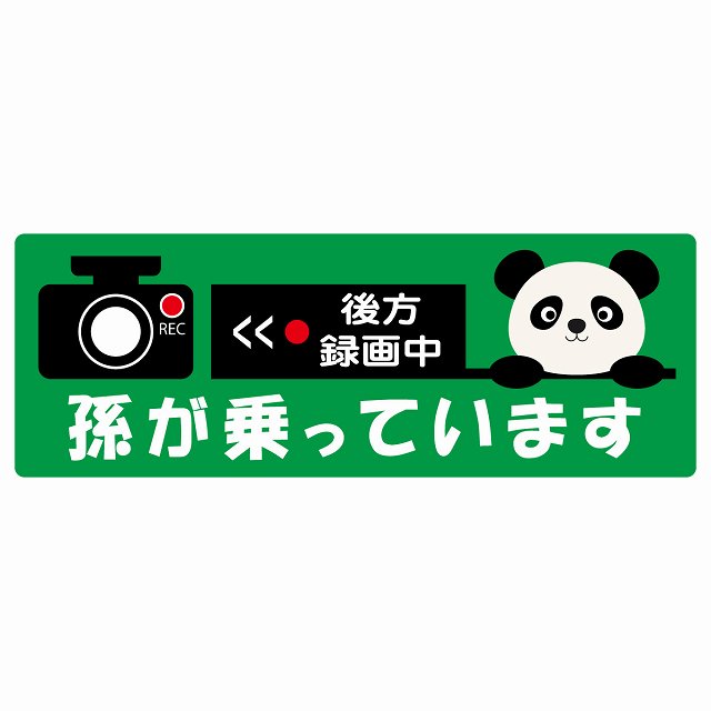 孫が乗っています 後方録画中 ぱんだ グリーン ステッカー 14x5cm 長方形