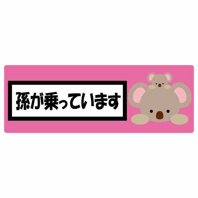 孫が乗っています 祖父母と孫 こあら ピンク ステッカー 14x5cm 長方形