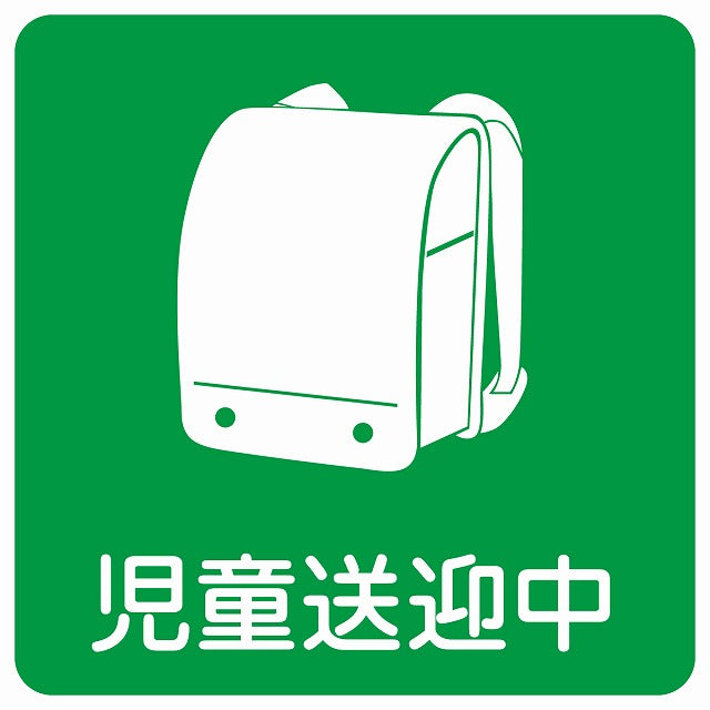 児童送迎中 ランドセル グリーン ステッカー 27x27cm 正方形