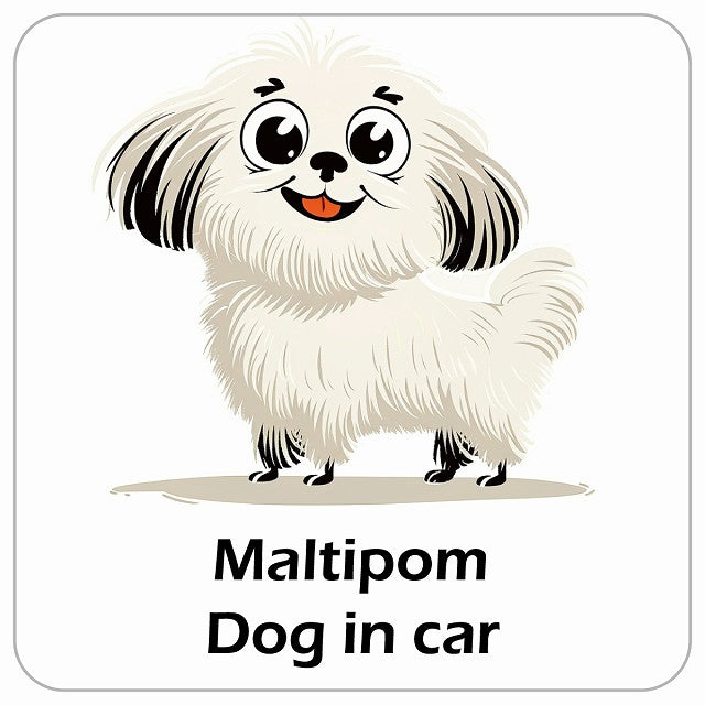 Maltipom ポメマル DOG IN CAR アメリカン カートゥーン スタイル アニメ風 ステッカー 13x13cm 正方形