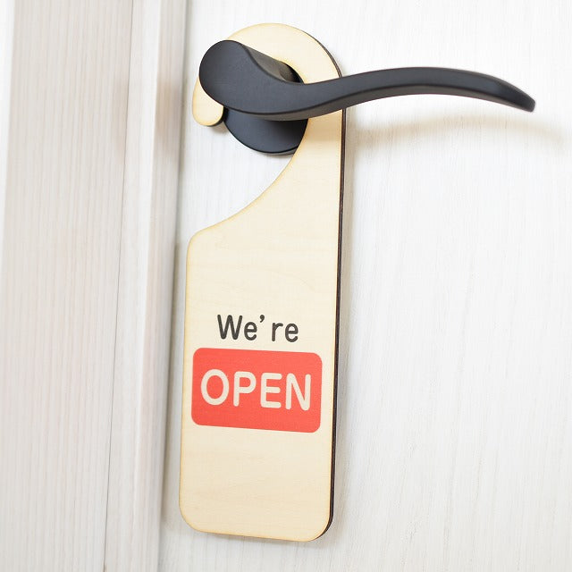 OPEN CLOSED Aタイプ 横 両面タイプ 吊り下げ 木製ドアプレート 6.5x20cm