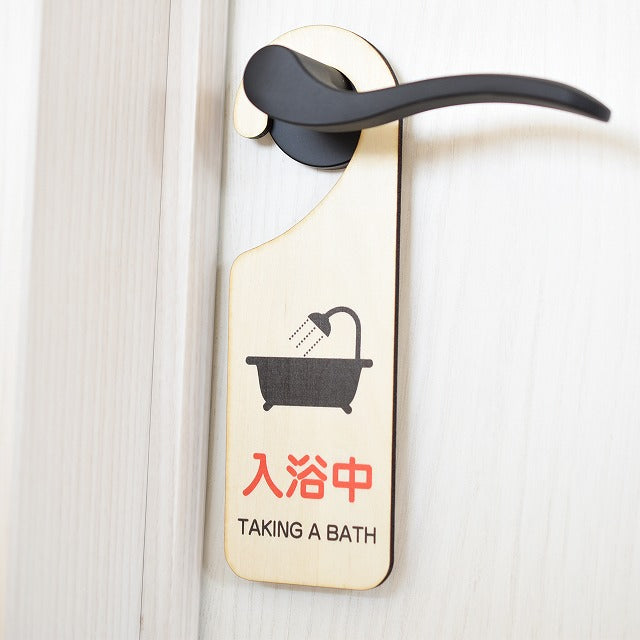 入浴中 TAKING A BATH 吊り下げ 木製ドアプレート 6.5x20cm
