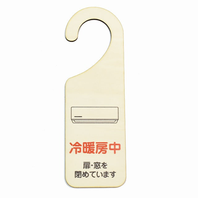 冷暖房中 扉・窓を閉めています 吊り下げ 木製ドアプレート 6.5x20cm