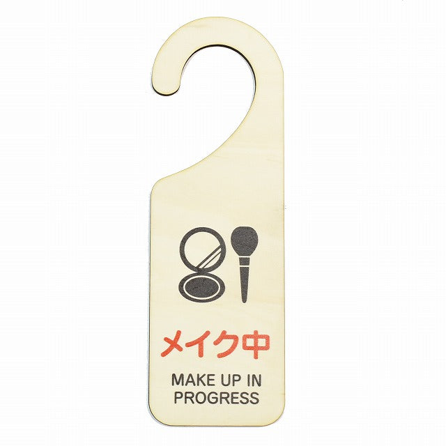メイク中 MAKE UP IN PROGRESS 吊り下げ 木製ドアプレート 6.5x20cm