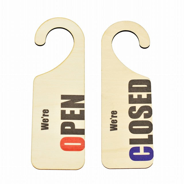 OPEN CLOSED Bタイプ 縦 両面タイプ 吊り下げ 木製ドアプレート 6.5x20cm