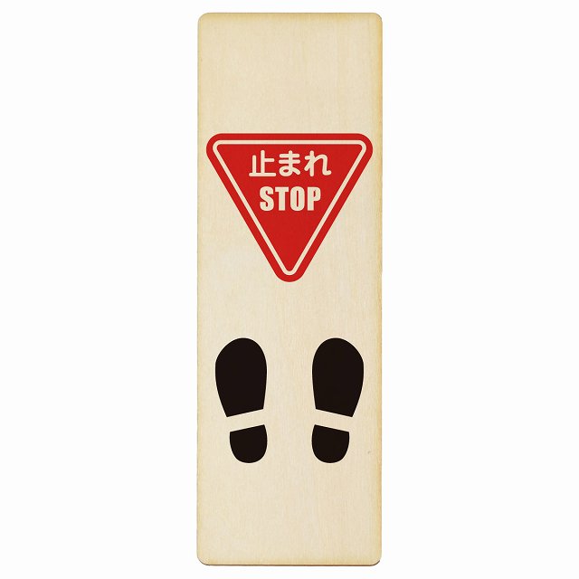 止まれ 靴跡付 木製プレート 長方形 縦タイプ