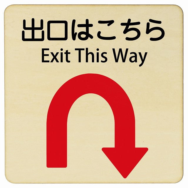 出口はこちら Uマーク矢印 Exit This Way 正方形 インバウンド 多言語 英語 外国語 英語表記 木製プレート 正方形