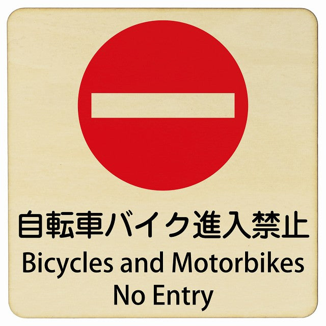 自転車 バイク 進入禁止 Bicycles and Motorbikes - No Entry 正方形 インバウンド 多言語 英語 外国語 英語表記 木製プレート 正方形